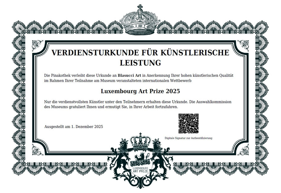 Als Zeichen dieser Wertschätzung wurde mir ein Künstlerisches Verdienstzertifikat verliehen – ein Dokument, das ab sofort in meinem persönlichen Kandidatenbereich in neun Sprachen bereitsteht. Es symbolisiert für mich nicht nur Anerkennung, sondern auch Vertrauen in meine künstlerische Vision.